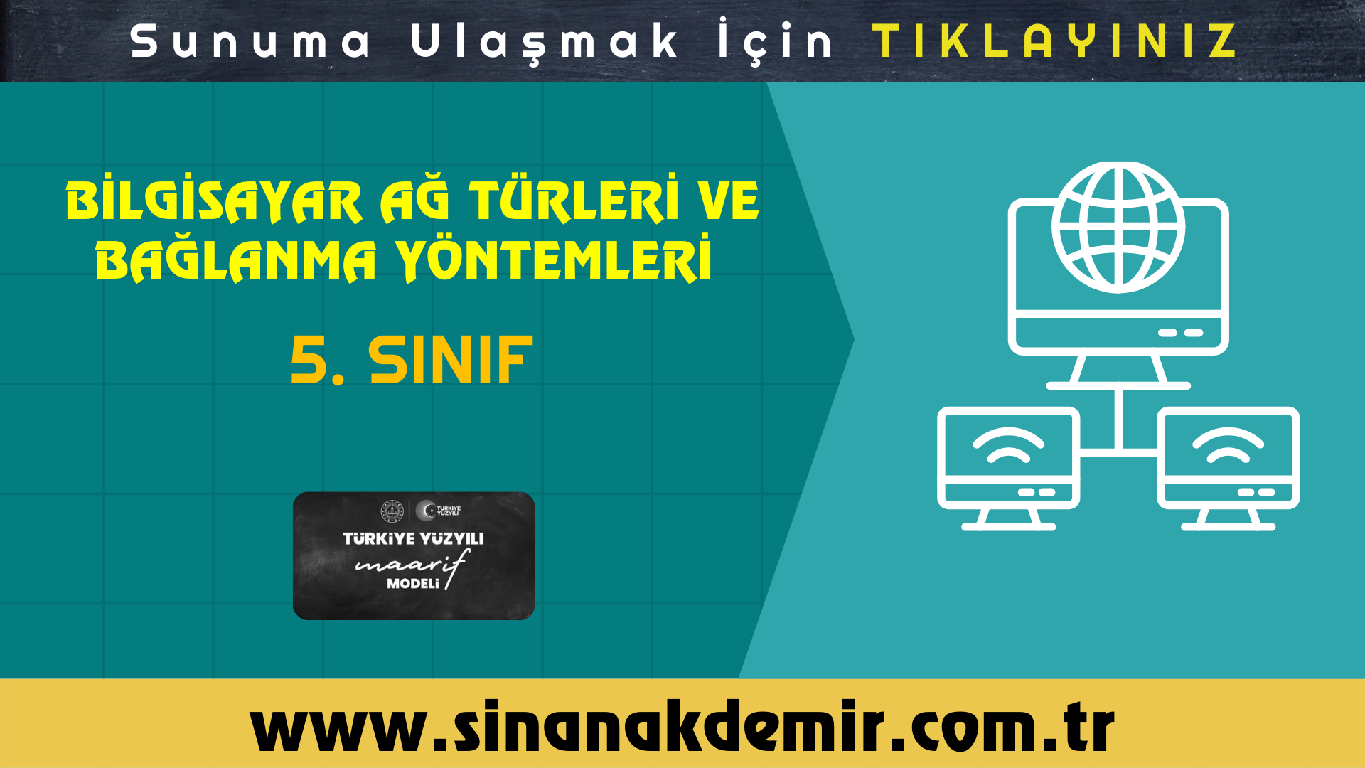 Bilişim Teknolojileri ve Yazılım Dersi 5.Sınıflar için Türkiye Yüzyılı Maarif Modeline uyumlu hazırlamış olduğum Bilgisayar Ağ Türleri ve Bağlanma Yöntemleri sunumu aşağıda yer alıyor. Dersimi de tamamen bu sunum üzerinden işliyorum. Sunumu ve öğrencilerin deftere yazması gereken önemli notları da yazımızda bulabilirsiniz. Bir Teşekkür zor olmamalı 🙂