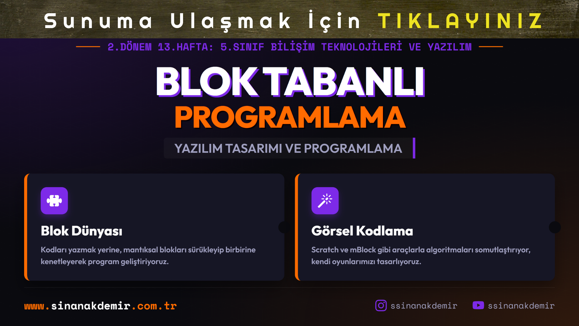 Bilişim Teknolojileri ve Yazılım Dersi 5.Sınıflar için Türkiye Yüzyılı Maarif Modeline uyumlu hazırlamış olduğum Blok Tabanlı Ortamda Yazılım Geliştirme sunumu aşağıda yer alıyor. Dersimi de tamamen bu sunum üzerinden işliyorum. Bir Teşekkür zor olmamalı 🙂
