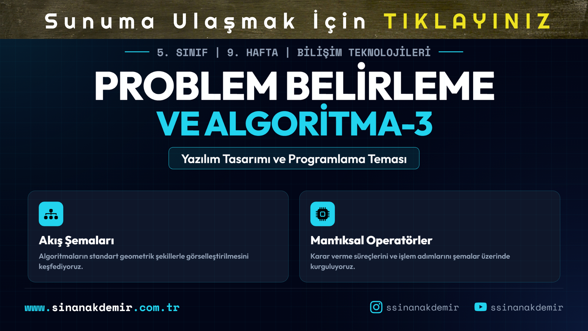 Bilişim Teknolojileri ve Yazılım Dersi 5.Sınıflar için Türkiye Yüzyılı Maarif Modeline uyumlu hazırlamış olduğum Problem Belirleme ve Algoritma Oluşturma-3 ( Akış Şemaları ) sunumu aşağıda yer alıyor. Dersimi de tamamen bu sunum üzerinden işliyorum. Bir Teşekkür zor olmamalı 🙂